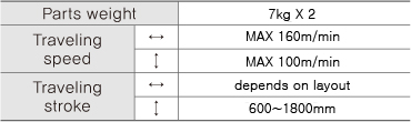 ·SERVO 控制左右(X)移送和上下(Z1, Z2)移送的 GANTRY TYPE ROBOT SYSTEM